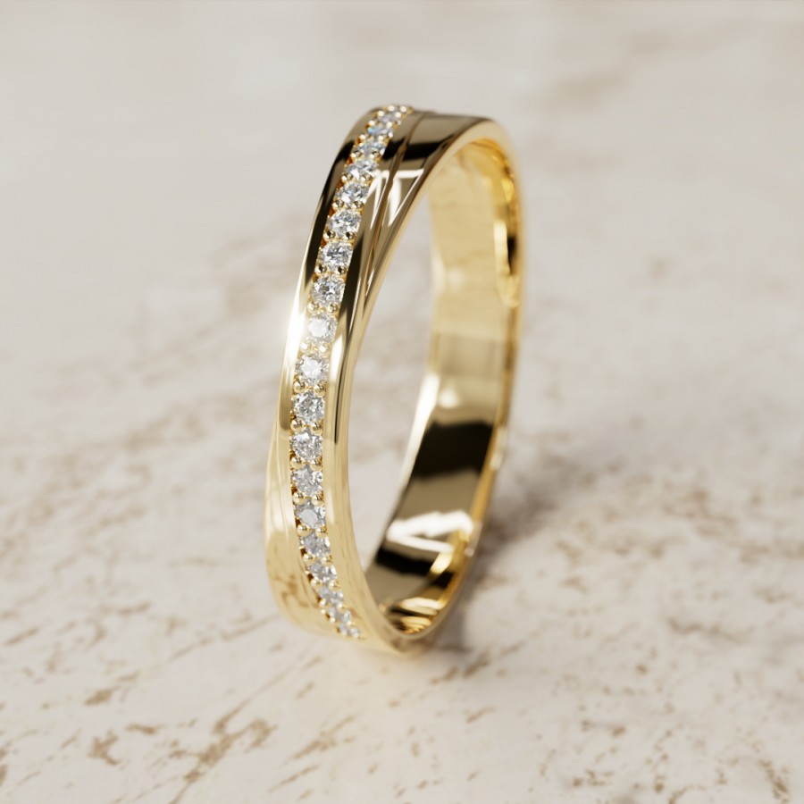 Nuestro anillo de compromiso Mila, anillo de 4mm de ancho con 20 piedras de 1mm sobre montadas, anillo elaborado en Oro de 18k con un peso aproximado de 3.25 gramos.