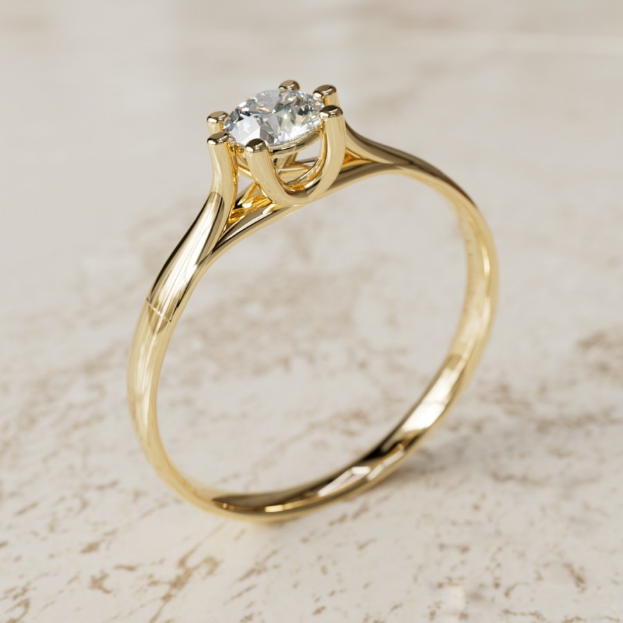 Nuestro anillo de compromiso Amelie, anillo de 2.5mm de ancho con 1 piedra Central de 4mm, anillo elaborado en Oro de 18k con un peso aproximado de 2.4 gramos.