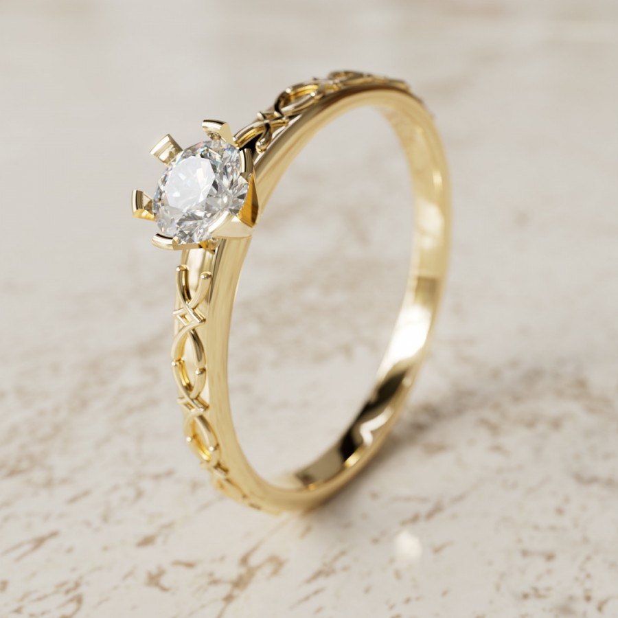 Nuestro anillo de compromiso Lily, anillo de 2mm de ancho con 1 piedra Central de 4mm, anillo elaborado en Oro de 18k con un peso aproximado de 2.3 gramos.