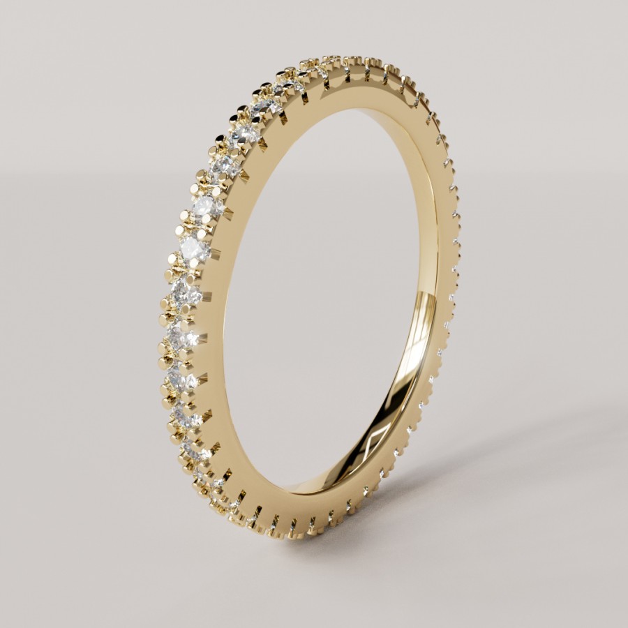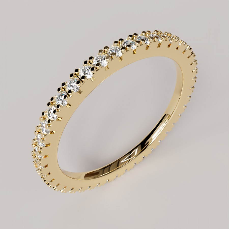 Nuestro anillo de compromiso Lisa, anillo cintillo completo de 1.6mm ancho, con piedras de 1.5mm, anillo elaborado en Oro de 18k con un peso aproximado de 2,8 gramos